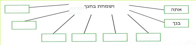 1. חברו שאלות הקשורות לחגים, ושאלו את החבר/ה היושב לידכם. כל תשובה נכונה מזכה ב-2 נקודות, כל תשובה שגויה מזכה את השואל ב-2 נקודות.