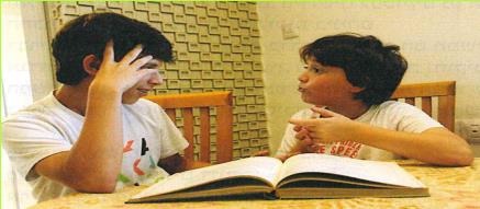 (בספר תמונה של שני ילדים מדברים זה עם זה)